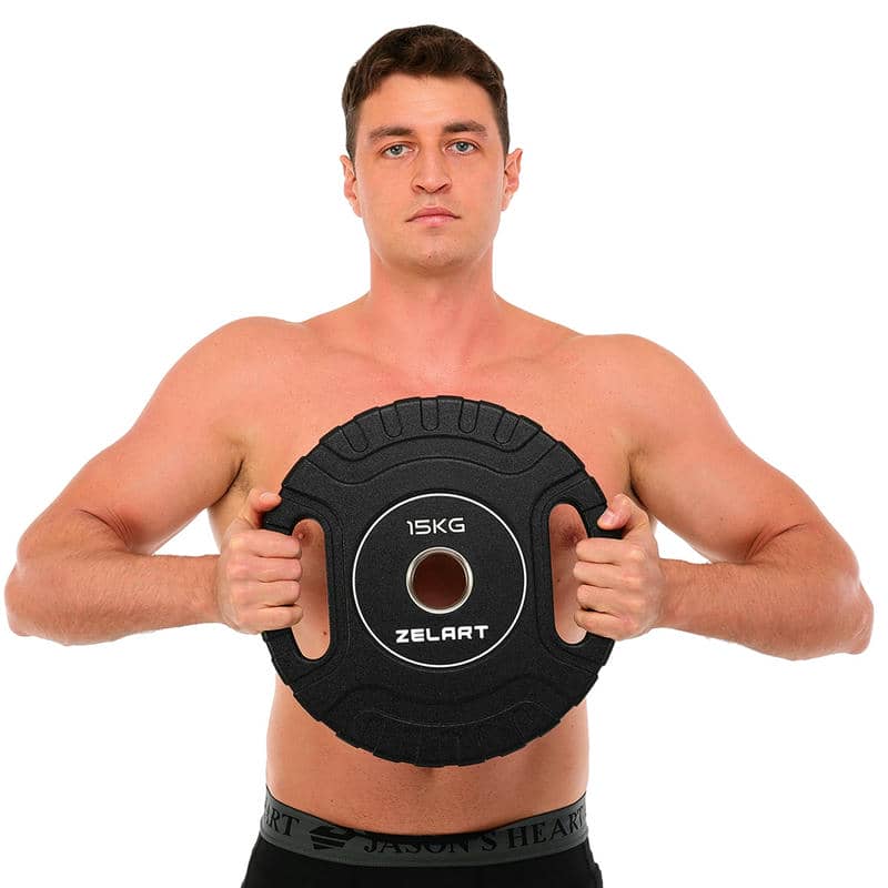 Млинці (диски) обгумовані Zelart Z-HIT з потрійним хватом 15кг, код: TA-5160-15-S52