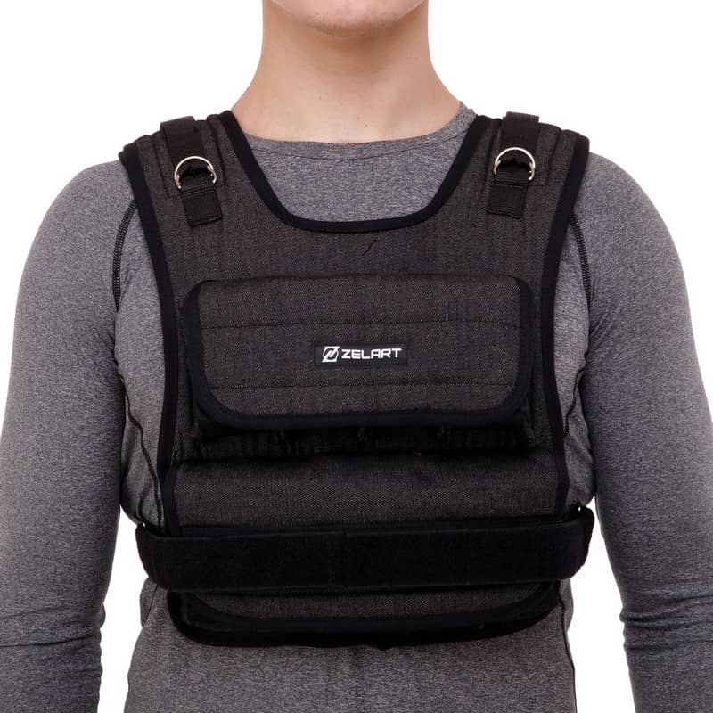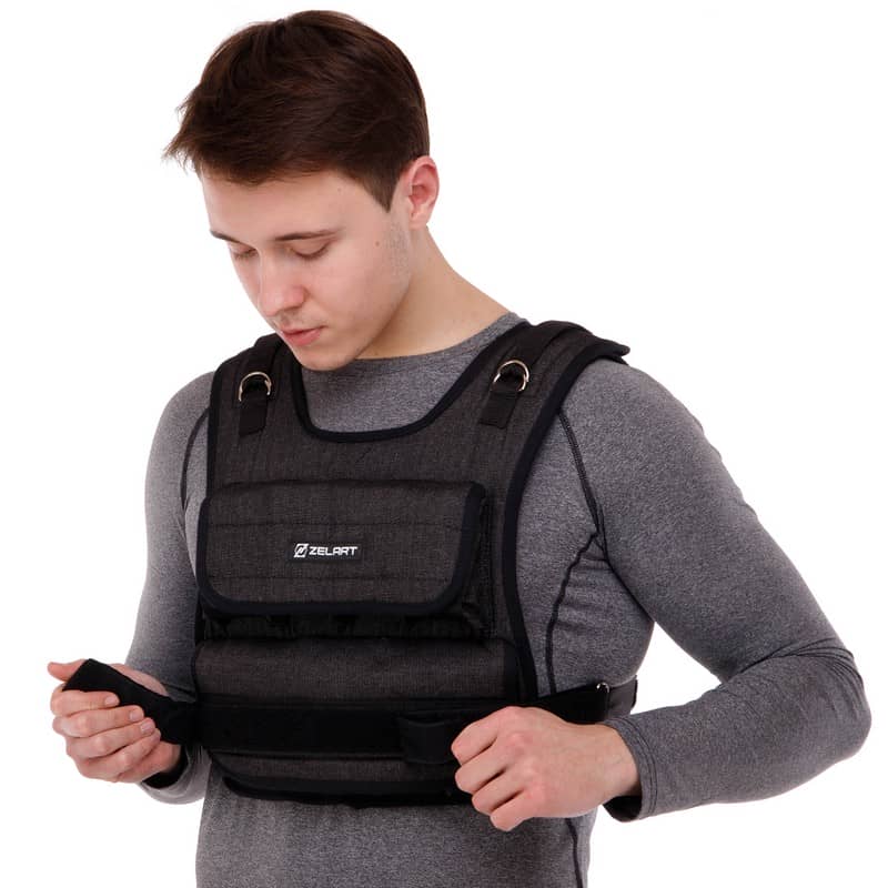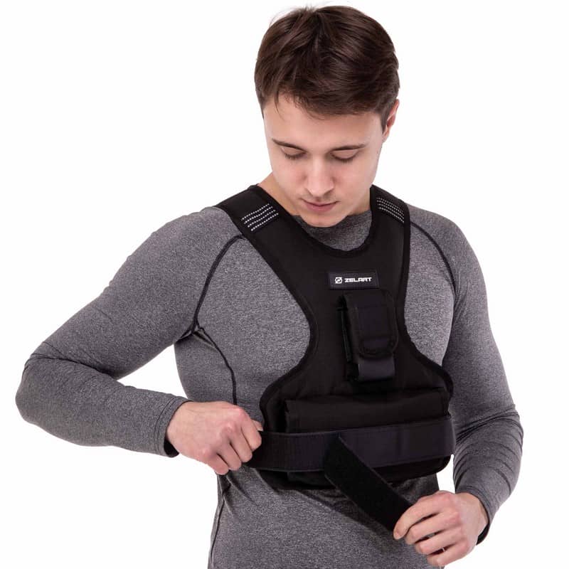 Жилет обважнювач з регульованою вагою Zelart Weigth Vest 10 кг, чорний, код: FI-2630-10