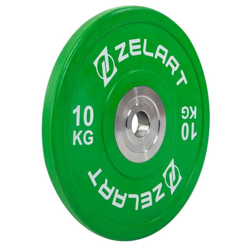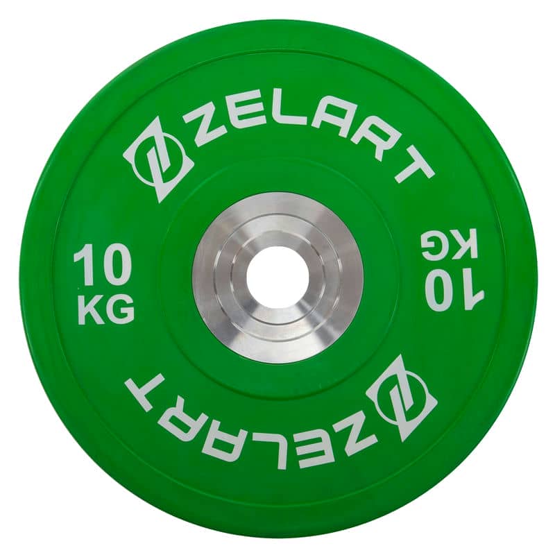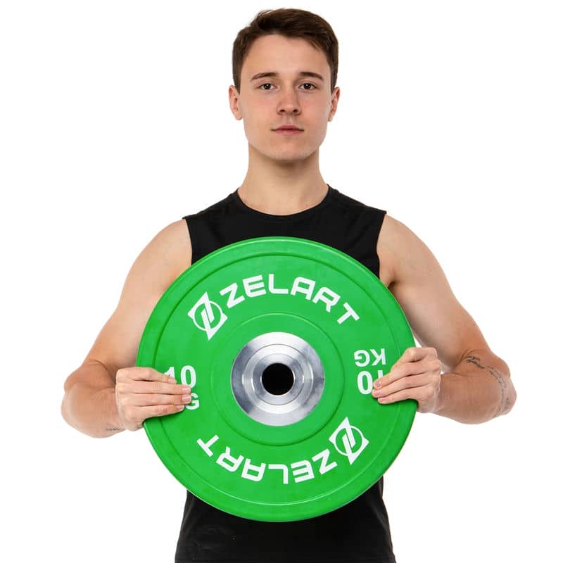 Блини (диски) бамперні для кросфіту гумові Zelart d-52мм, 10кг, зелений, код: TA-7798-10-S52