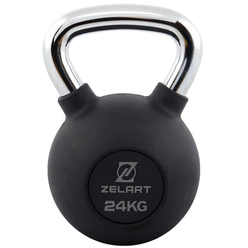 Гиря чавунна з гумовим покриттям та хромованою ручкою Zelart 24кг, чорний, код: TA-7794-24-S52