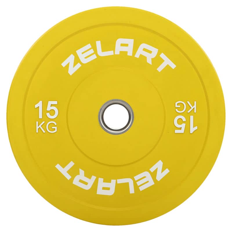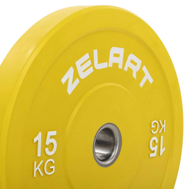 Блини (диски) бамперні для кросфіту гумові Zelart d-52мм, 15кг, жовтий, код: TA-7797-15