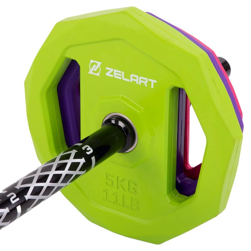 Штанга для фітнесу (фітнес памп) Zelart 17,5 кг, фіолетовий-салатовий, код: TA-7801-17_5