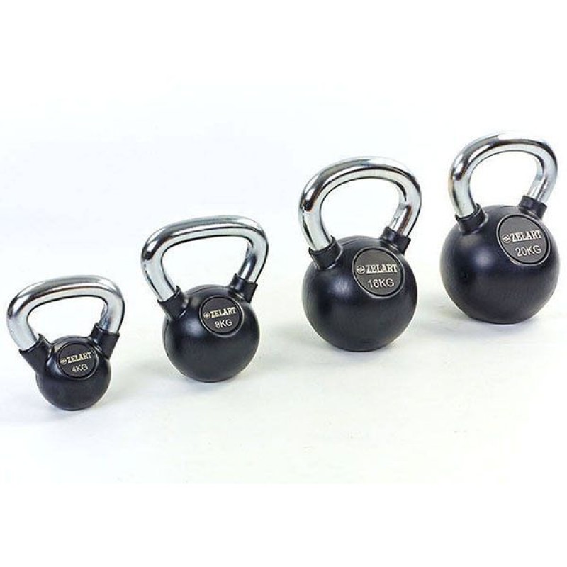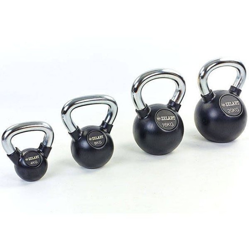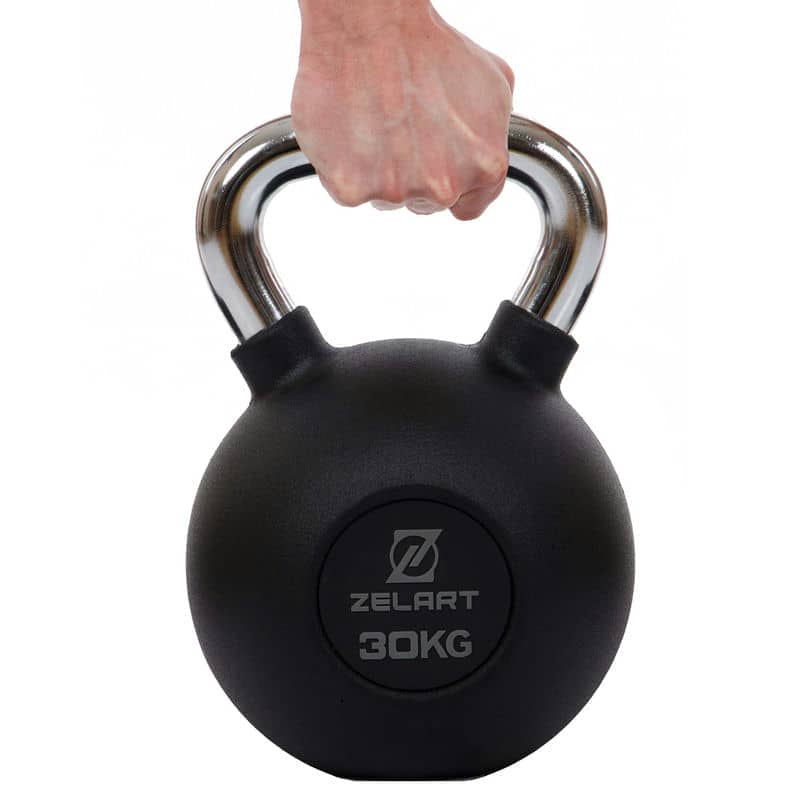 Гиря чавунна з гумовим покриттям та хромованою ручкою Zelart 30кг, чорний, код: TA-7794-30-S52