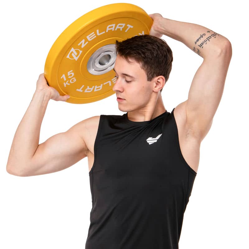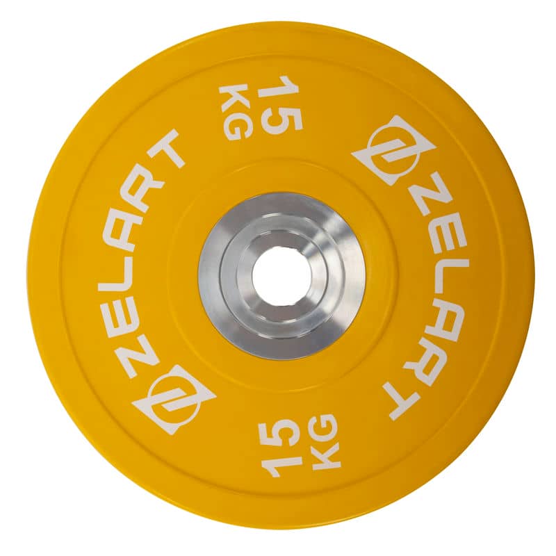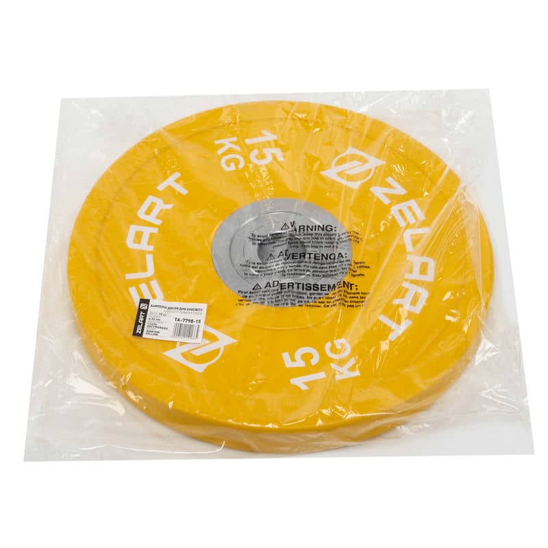 Блини (диски) бамперні для кросфіту гумові Zelart d-52мм, 15кг, жовтий, код: TA-7798-15-S52