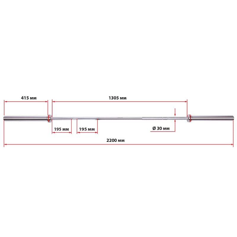 Гриф для штанги сталевий хромований Олімпійський професійний прямий з підшипником Zelart 2,2м, ø50мм, хром-чорний, код: TA-7242