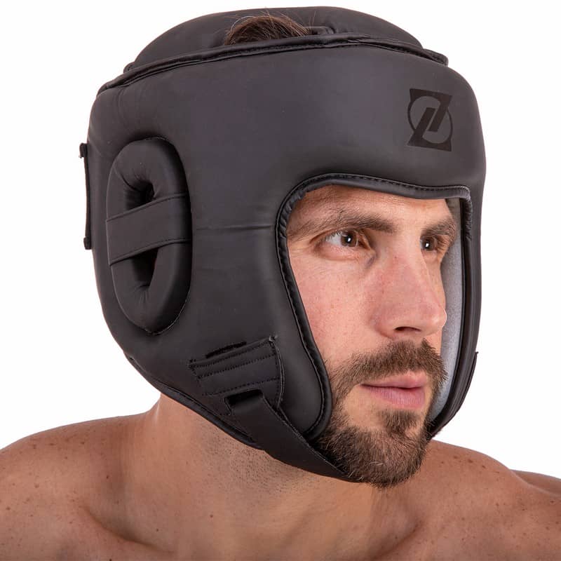 Шолом боксерський відкритий з посиленим захистом верхівки шкіряний Zelart M чорний, код: VL-3322_MBK