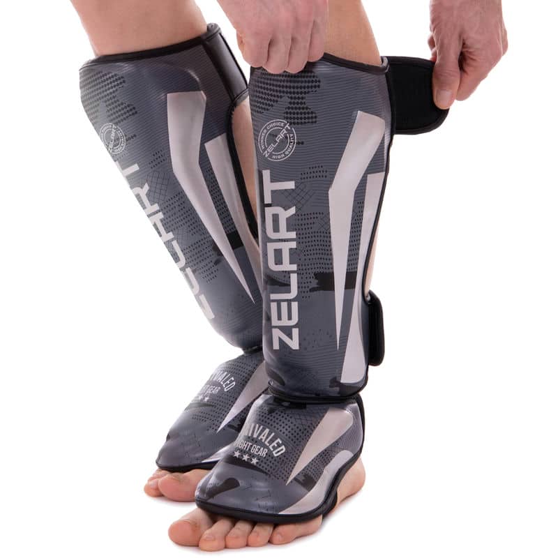Захист для гомілки і стопи ММА, Кікбоксинг Zelart L, чорний-сірий камуфляж, код: BO-2531_L