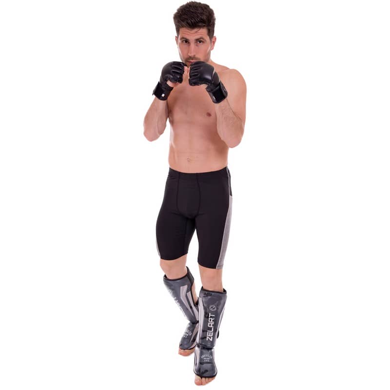 Захист для гомілки і стопи ММА, Кікбоксинг Zelart M, чорний-сірий камуфляж, код: BO-2531_M