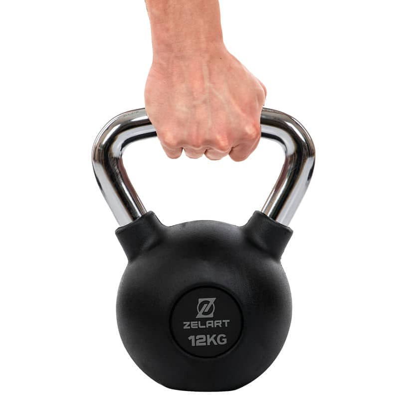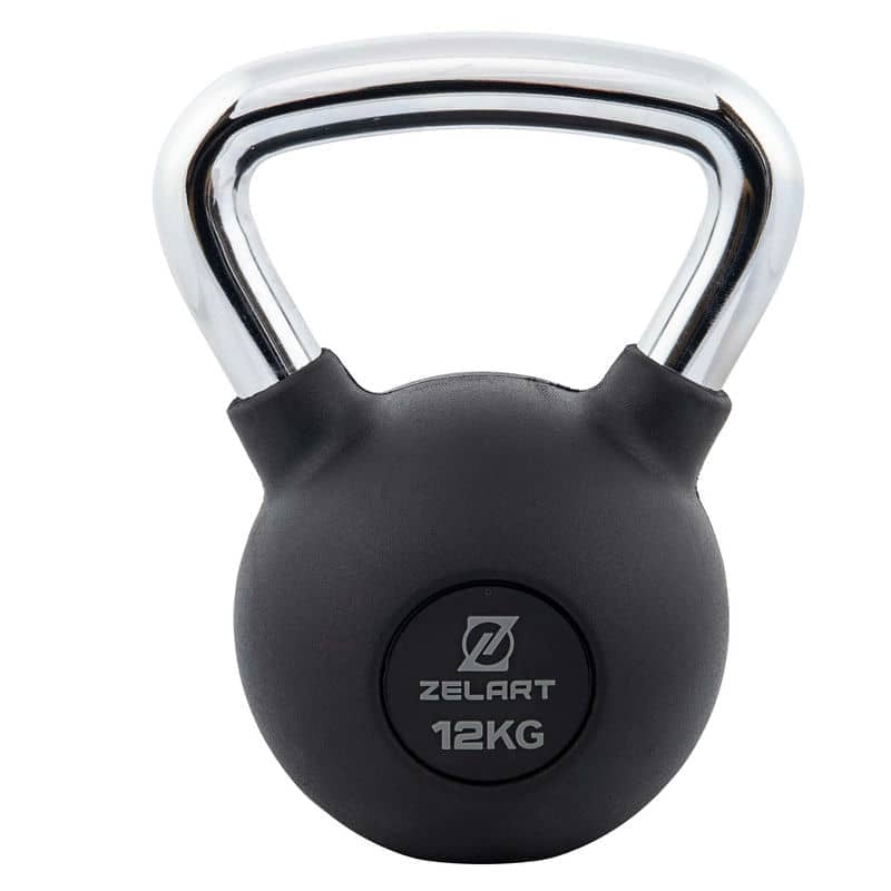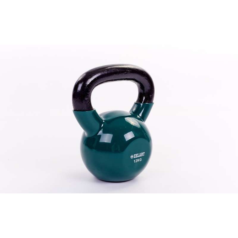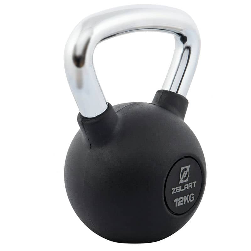Гиря чавунна з гумовим покриттям та хромованою ручкою Zelart 12кг, чорний, код: TA-7794-12-S52