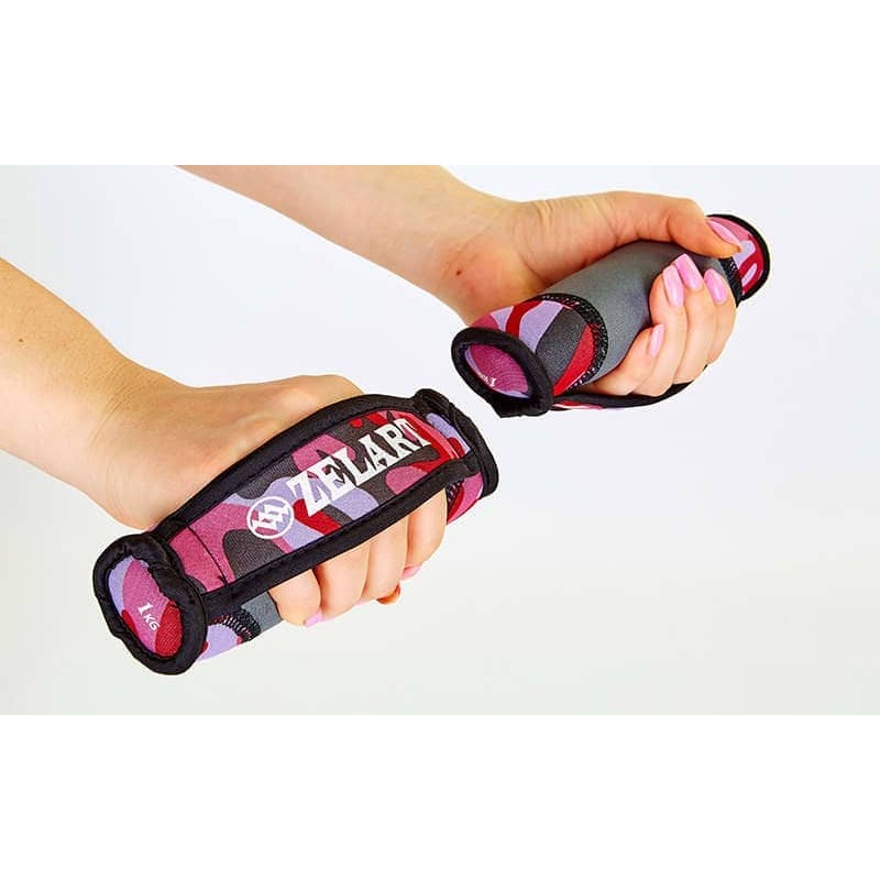 Гантелі для фітнесу з м"якими накладками Zelart 2х1кг, рожевий камуфляж, код: FI-5730-2-S52