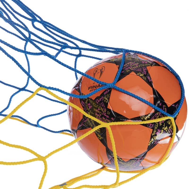 Сітка на ворота футбольні тренувальна безвузлова PlayGame Євро Еліта 7500x2500, 2шт, жовто-синій, код: SO-2324
