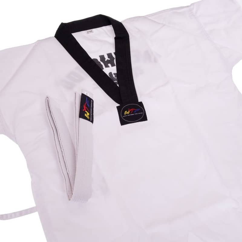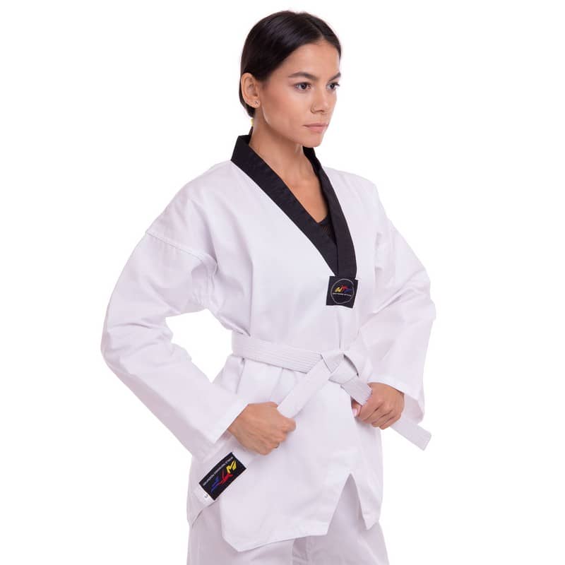 Кімоно для тхеквондо (добок) Matsa, розмір 3 (зріст 160), білий-чорний, код: MA-5467_3W