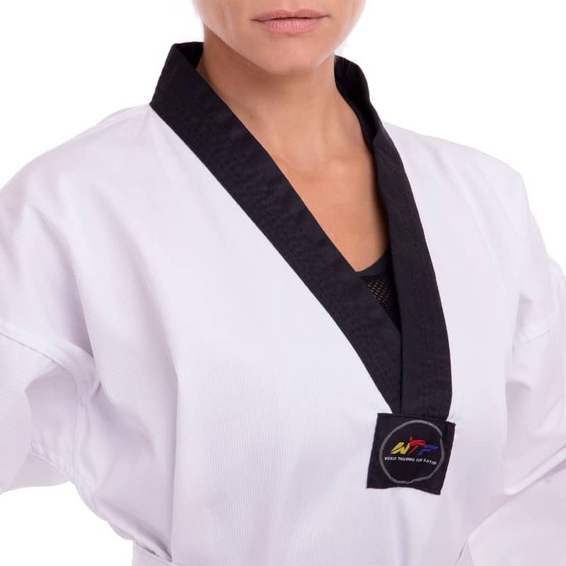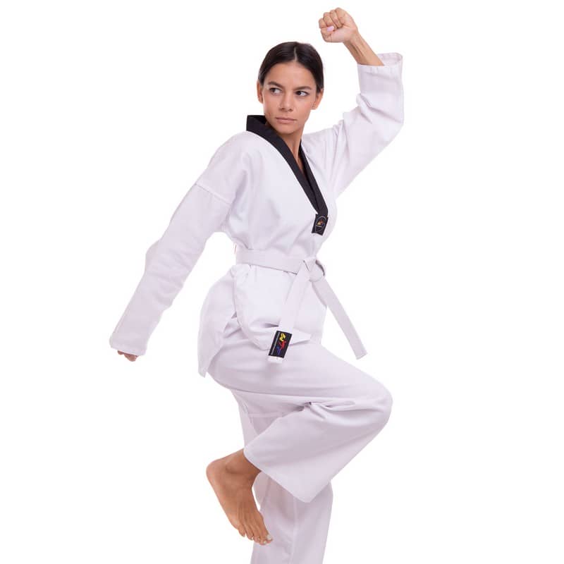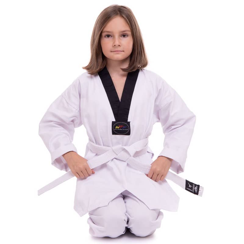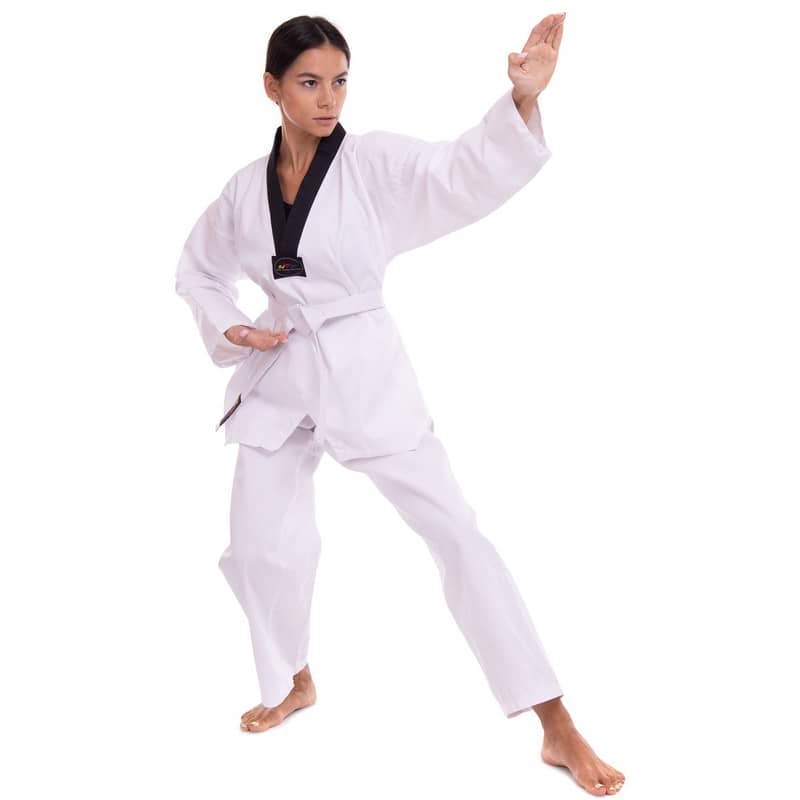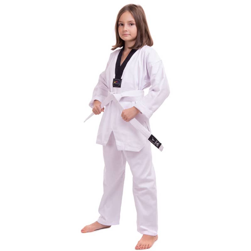 Кімоно для тхеквондо (добок) Matsa, розмір 00 (зріст 120), білий-чорний, код: MA-5467_00W
