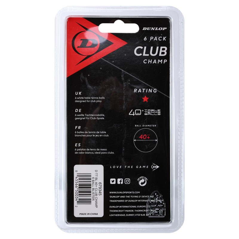 Набір м"ячів для настільного тенісу Dunlop Club Champ 6шт, білий, код: DL679345-S52