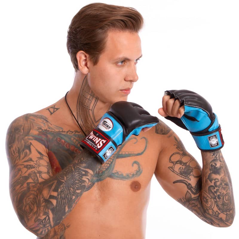 Рукавички для змішаних єдиноборств MMA шкіряні Twins XL, чорний-синій, код: GGL-4_XLBKBL