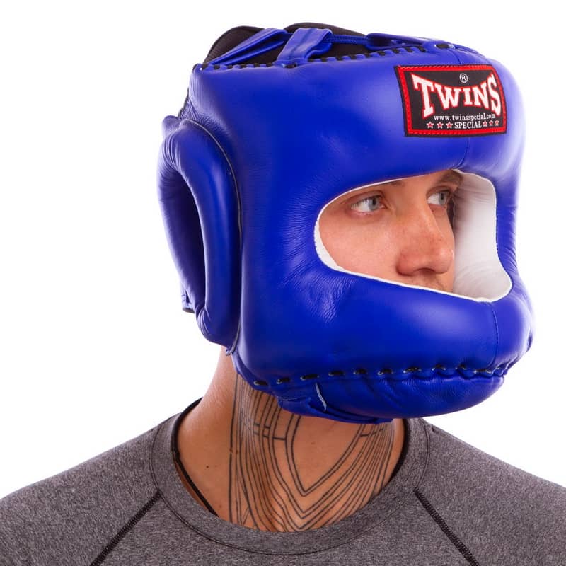 Шолом боксерський з бампером шкіряний Twins XL, синій, код: HGL9_XLBL-S52