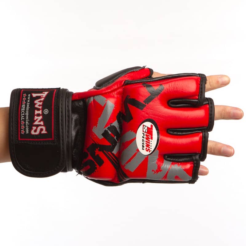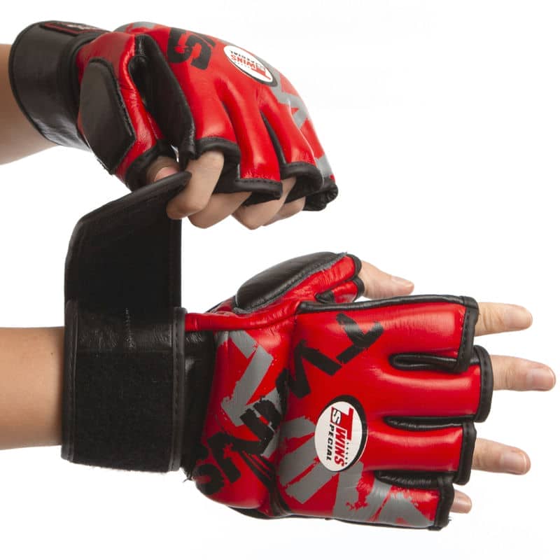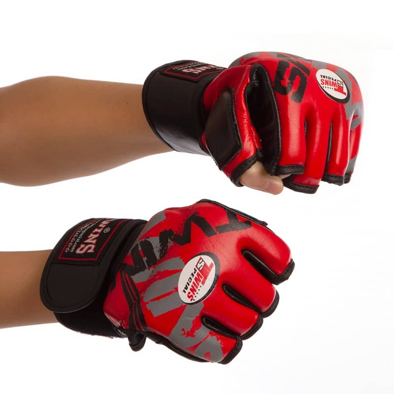 Рукавички для змішаних єдиноборств MMA Twins шкіра, розмір M, червоний, код: TW-001_MR