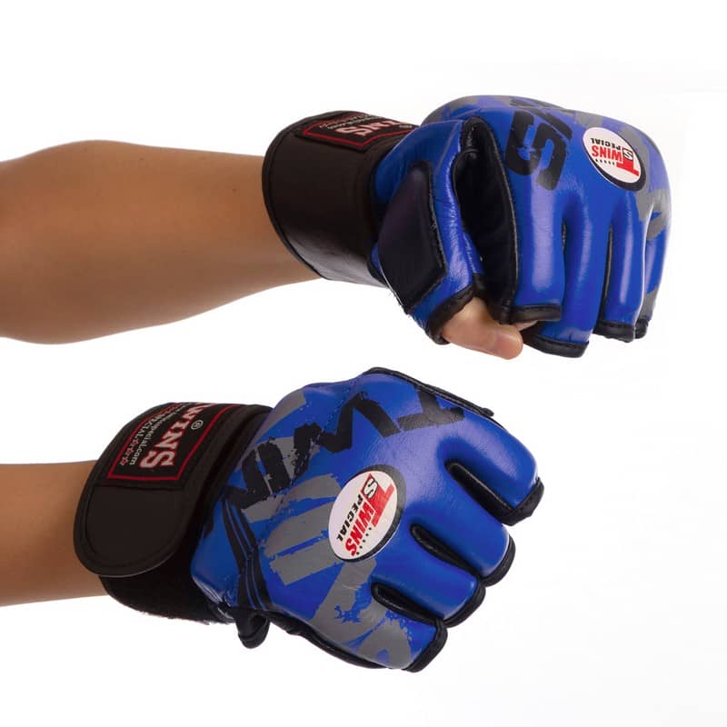 Рукавички для змішаних єдиноборств MMA Twins шкіра, розмір M, синій, код: TW-001_MBL