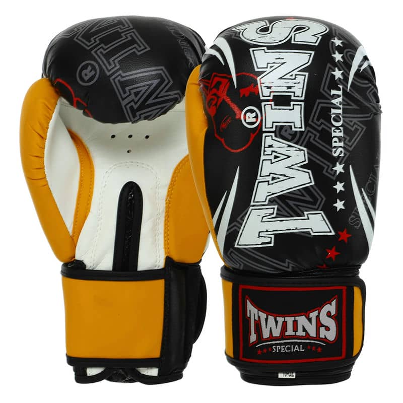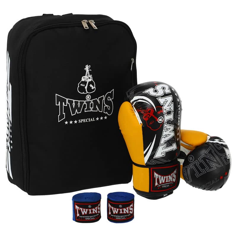 Боксерський набір 3в1 Twins 12 унцій, чорний-жовтий, код: BO-9943_12BKY