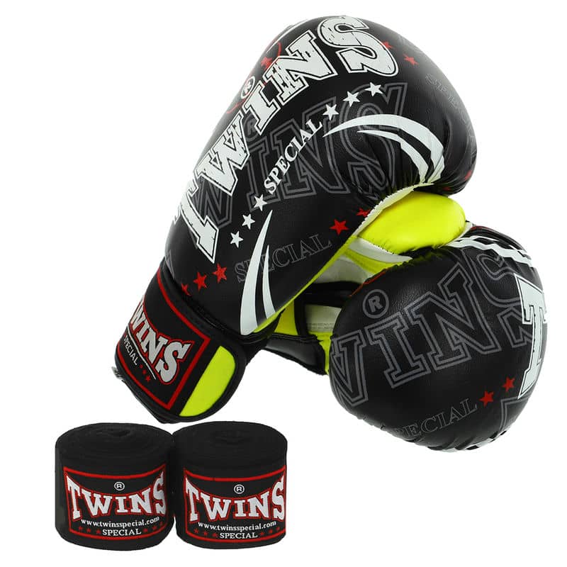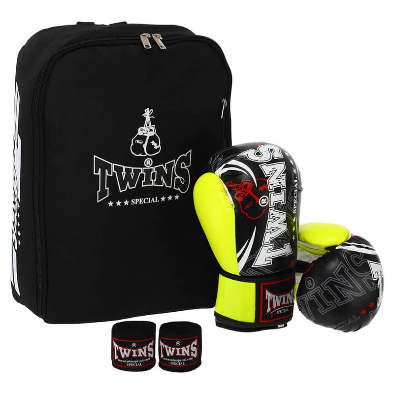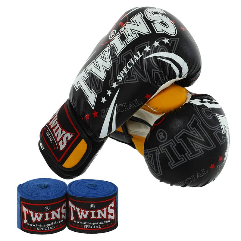 Боксерський набір 3в1 Twins 6 унцій, чорний-жовтий, код: BO-9943_6BKY