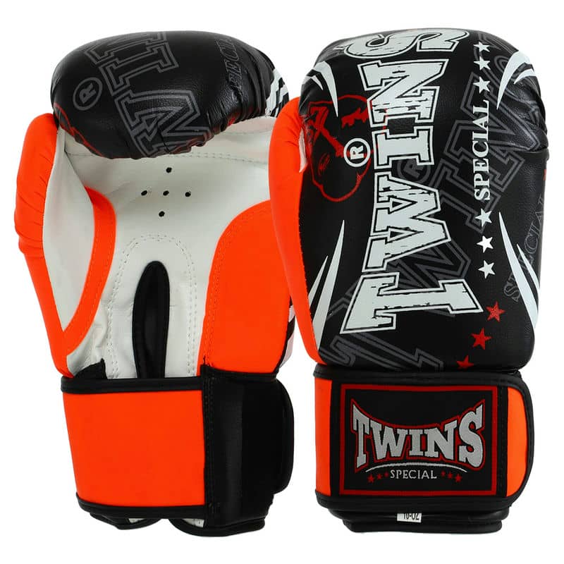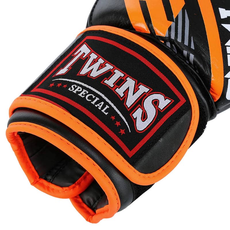 Боксерські рукавиці шкіряні Twins 10 унцій, чорний-помаранчевий, код: BO-5058_10OR