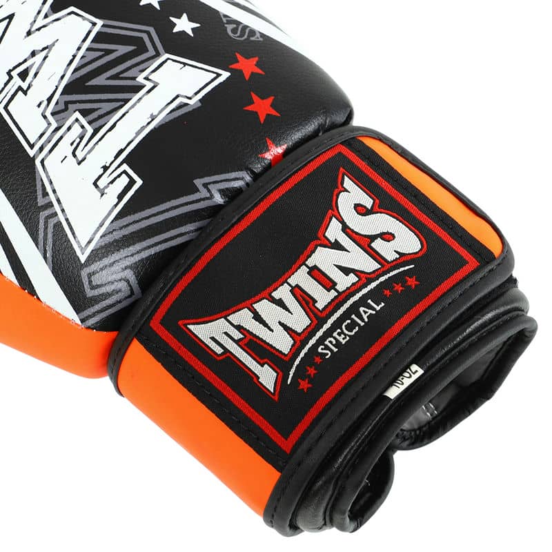 Боксерський набір 3в1 Twins 8 унцій, чорний-помаранчевий, код: BO-9943_8BKOR