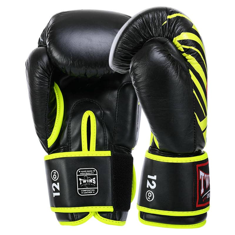 Боксерські рукавиці шкіряні Twins 12 унцій, чорний-салатовий, код: BO-5058_12LG