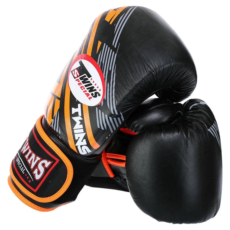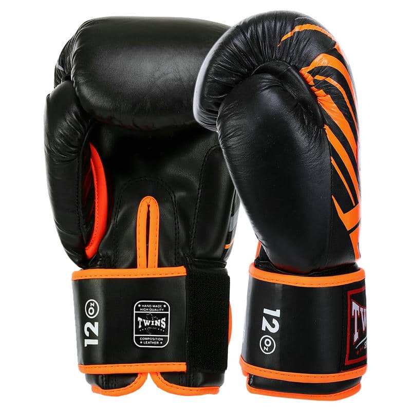 Боксерські рукавиці шкіряні Twins 12 унцій, чорний-помаранчевий, код: BO-5058_12OR