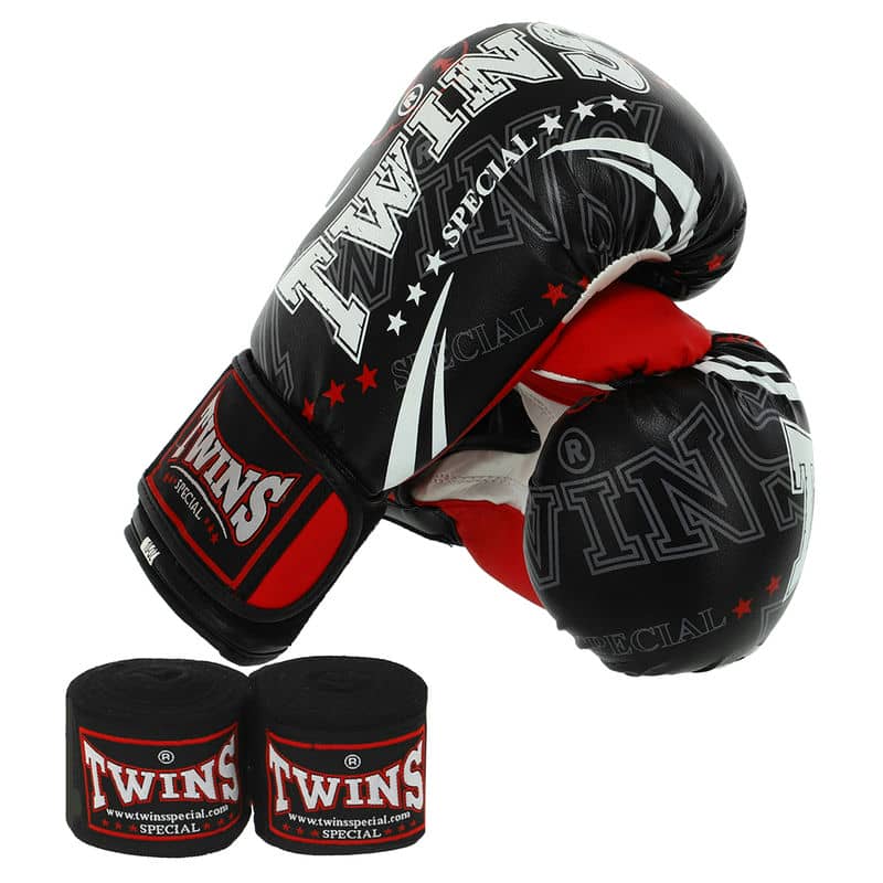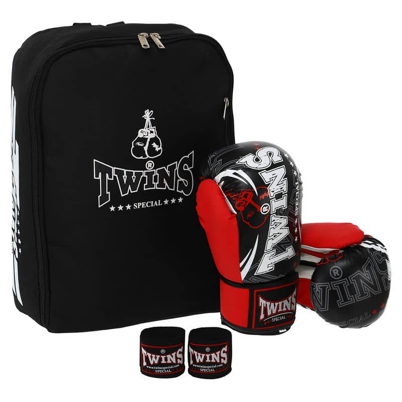 Боксерський набір 3в1 Twins 6 унцій, чорний-червоний, код: BO-9943_6BKR