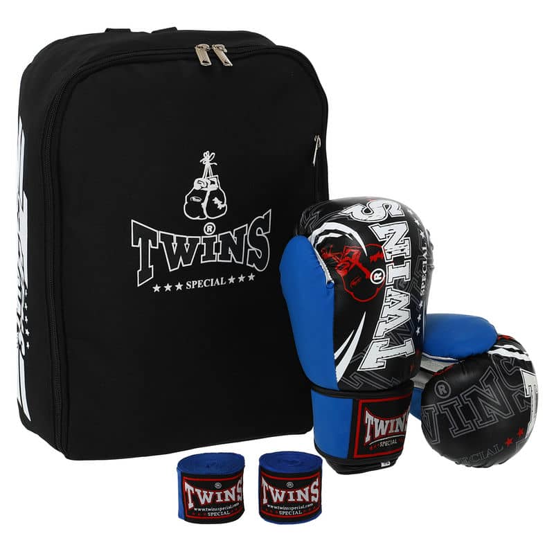 Боксерський набір 3в1 Twins 6 унцій, чорний-синій, код: BO-9943_6BKBL