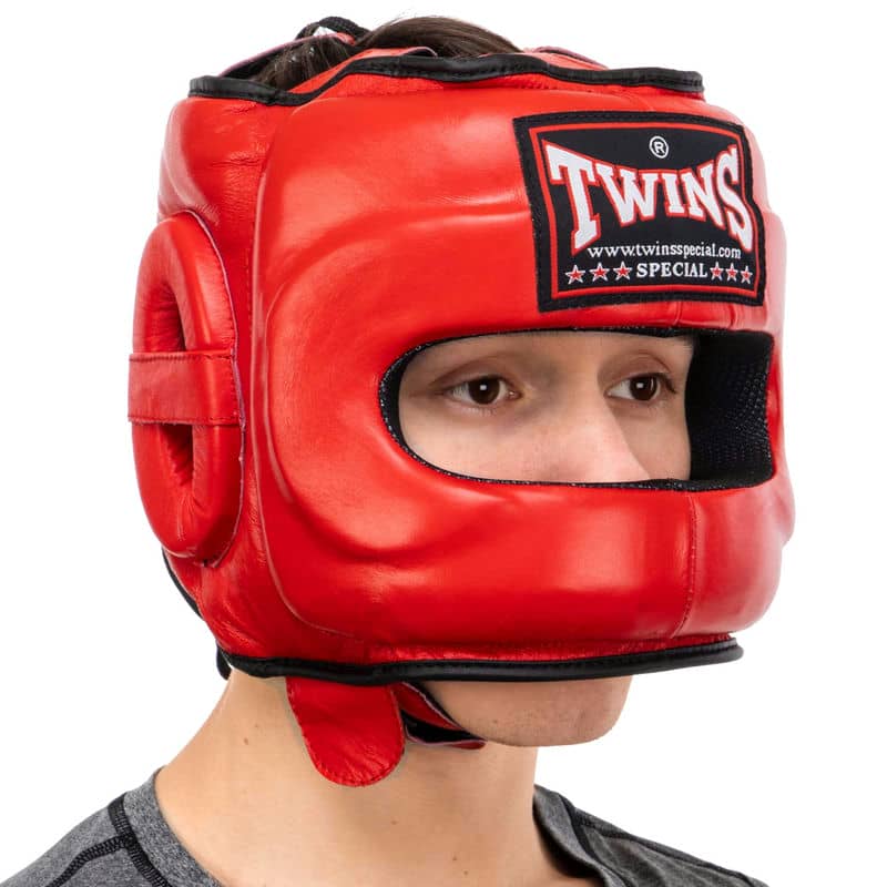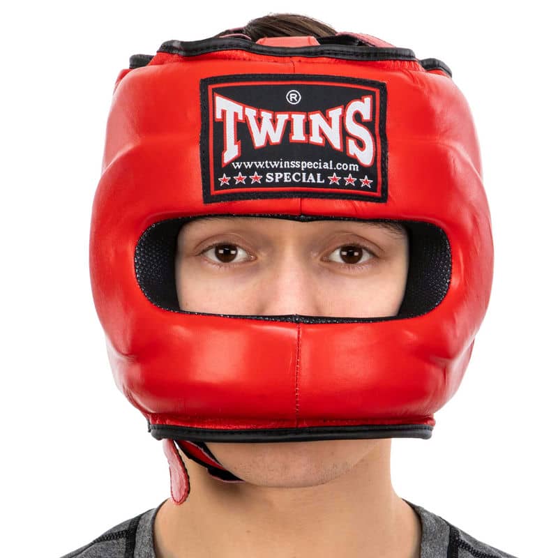 Шолом боксерський з бампером шкіряний Twins Steel Frame S, червоний, код: BO-0573_SR