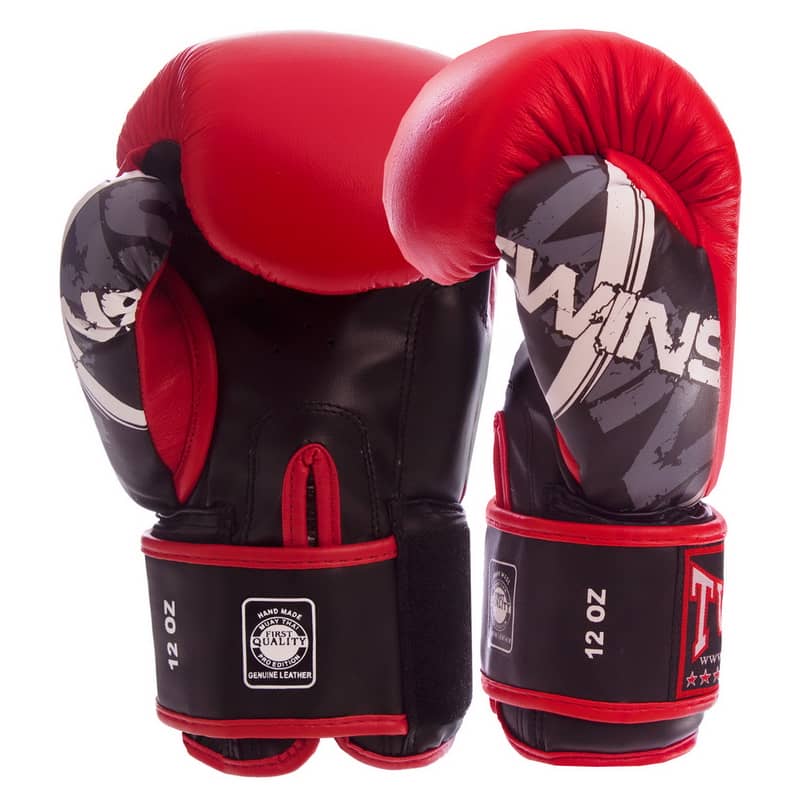 Рукавички боксерські Twins Classic 12 унцій, червоний-чорний, код: 0269_12R