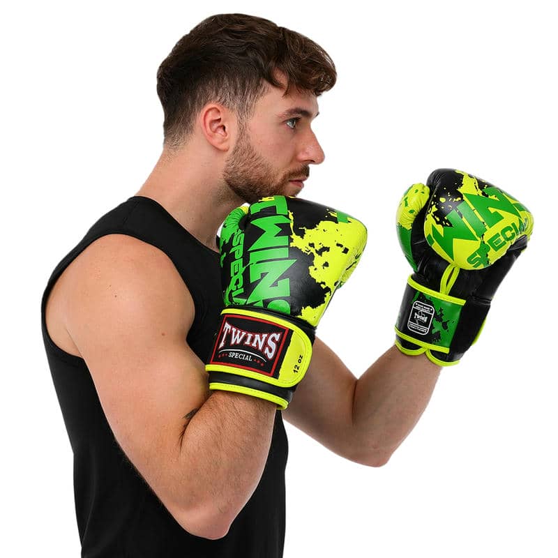 Боксерський набір 4в1 Twins 12 унцій, чорний-жовтий, код: B0-7972_12BKY
