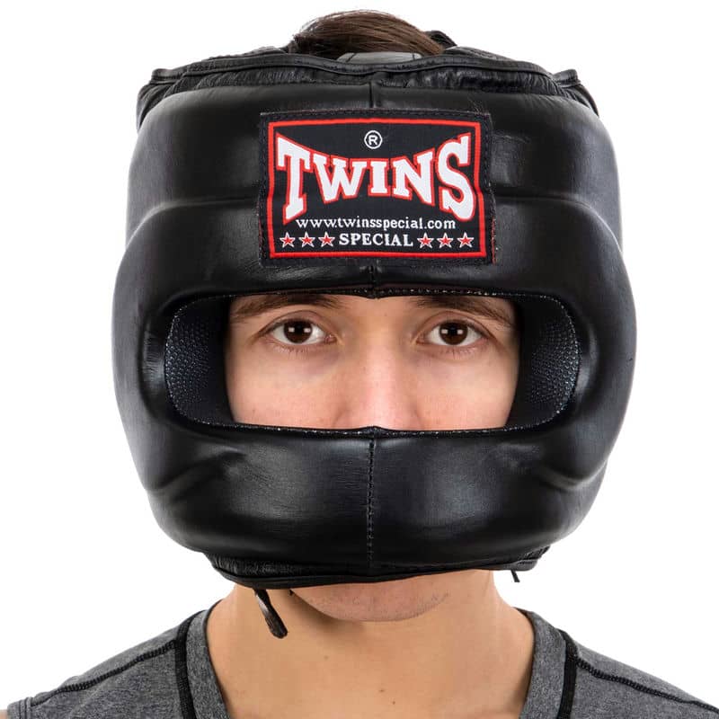 Шолом боксерський з бампером шкіряний Twins Steel Frame S, чорний, код: BO-0573_SBK