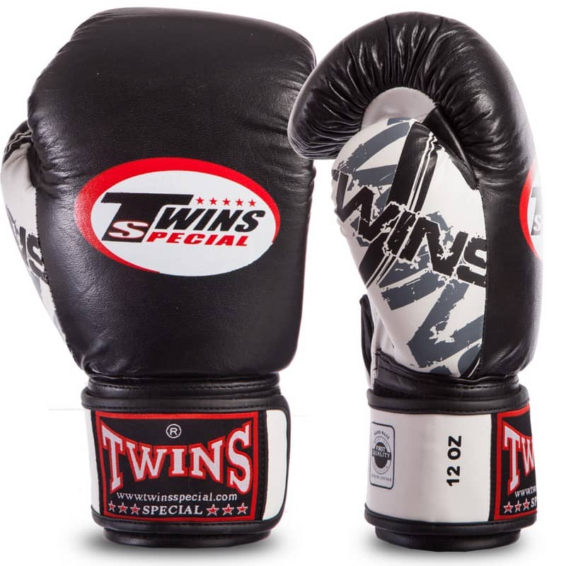 Рукавички боксерські Twins Classic 14 унцій, чорний-білий, код: 0269_14BK