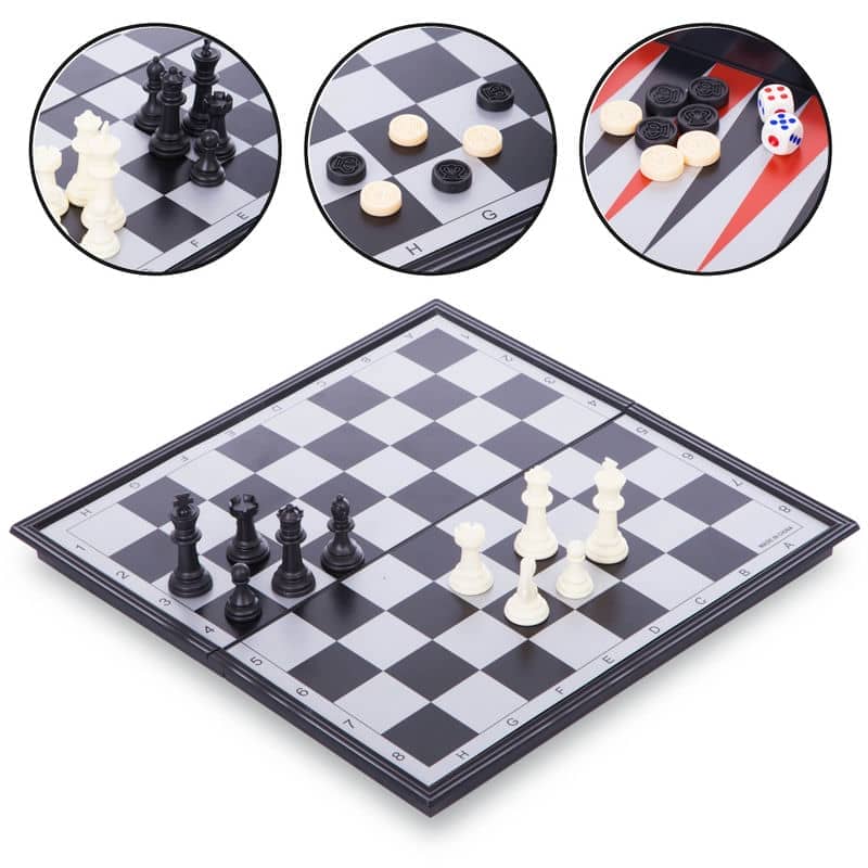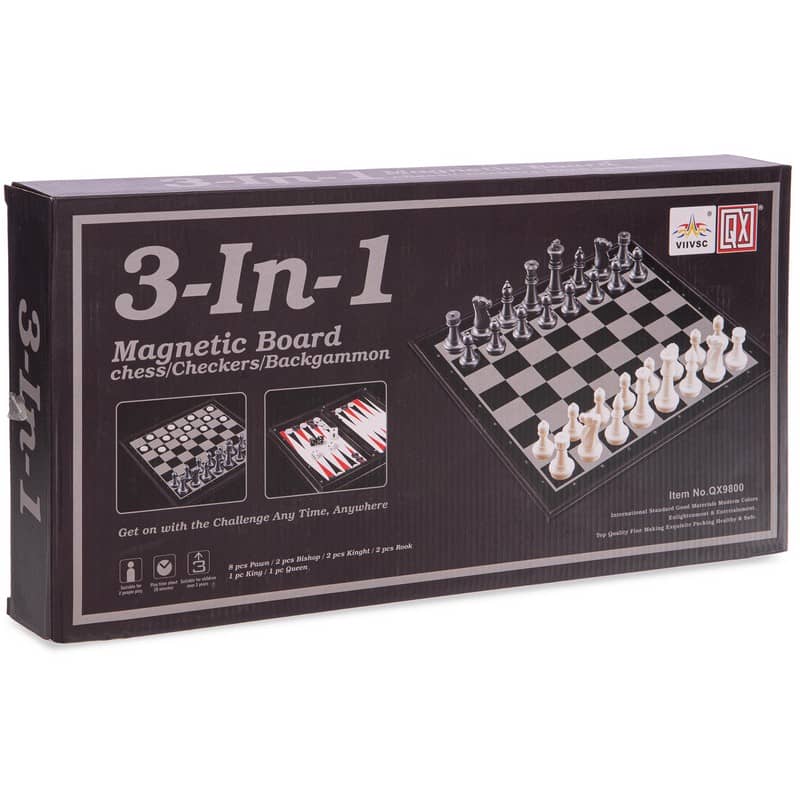 Шахи, шашки, нарди 3 в 1 дорожні пластикові магнітні ChessTour 360x360 мм, код: 9918-S52