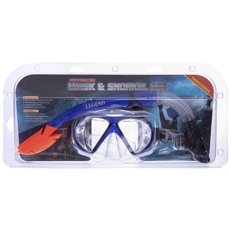 Набір для плавання маска з трубкою Legend чорний-синій-прозорий, код: M293P-SN110-PVC_BKBL