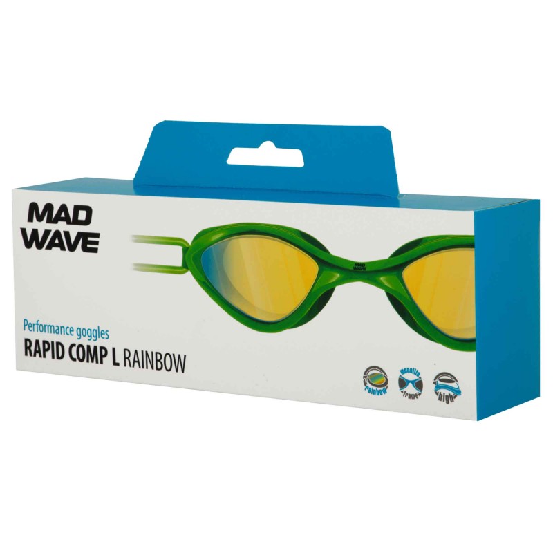 Окуляри для плавання дорослі райдужні лінзи дорослі MadWave Rapid Comp L Rainbow зелений, код: M048102_G