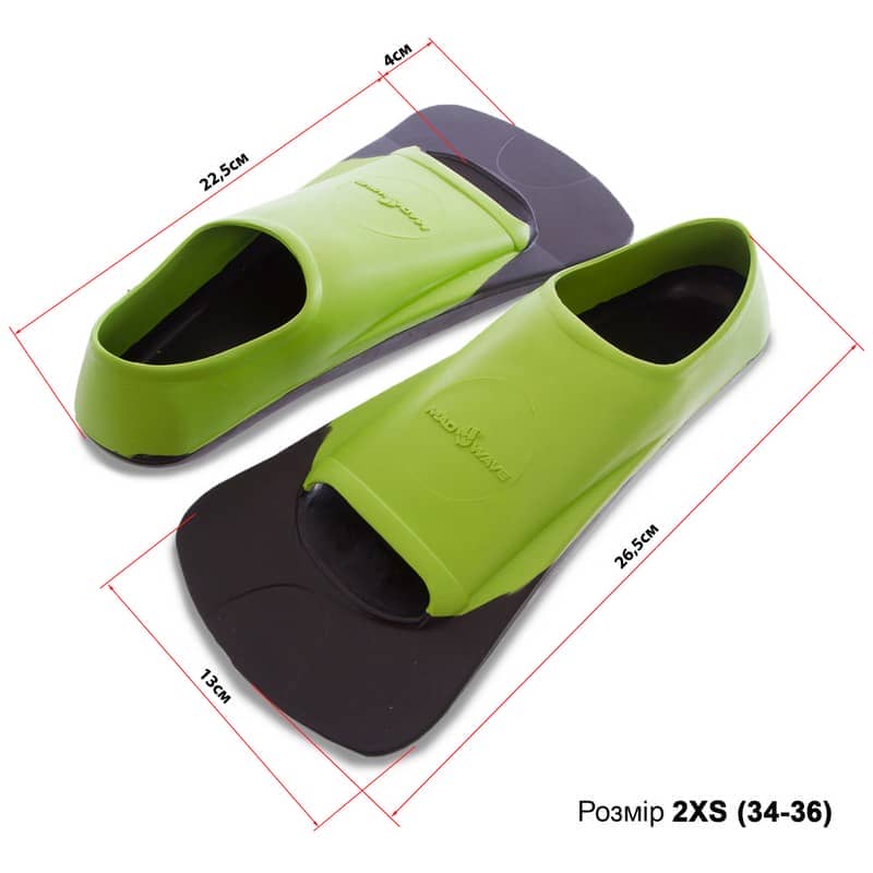 Ласти для тренувань у басейні короткі MadWave із закритою п"ятою 3XS (32-34), зелений, код: M074903_3XS