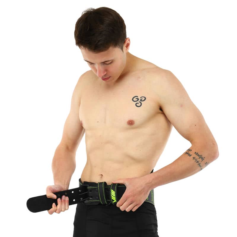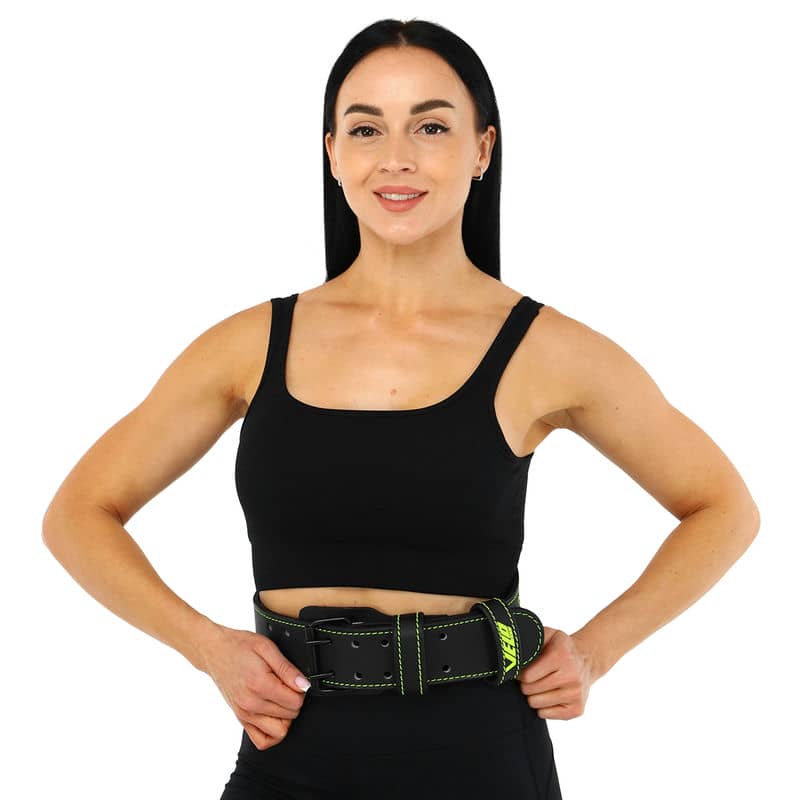 Пояс атлетичний шкіряний Velo 2XL ширина-15см, чорний-салатовий, код: VL-9739_2XL