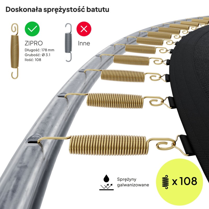 Батут Zipro Jump Pro 14FT (4350 мм) з зовнішньою сіткою, салатовий-чорний, код: 5902659840745-IN