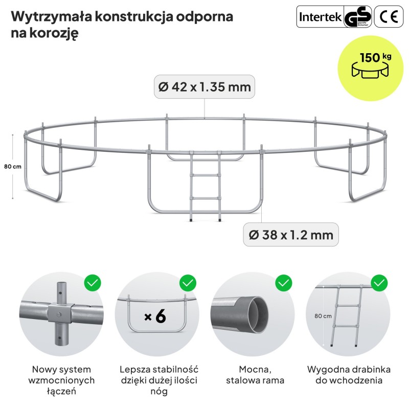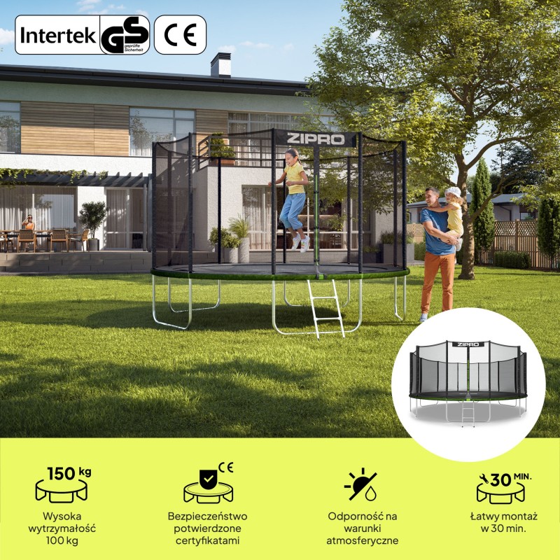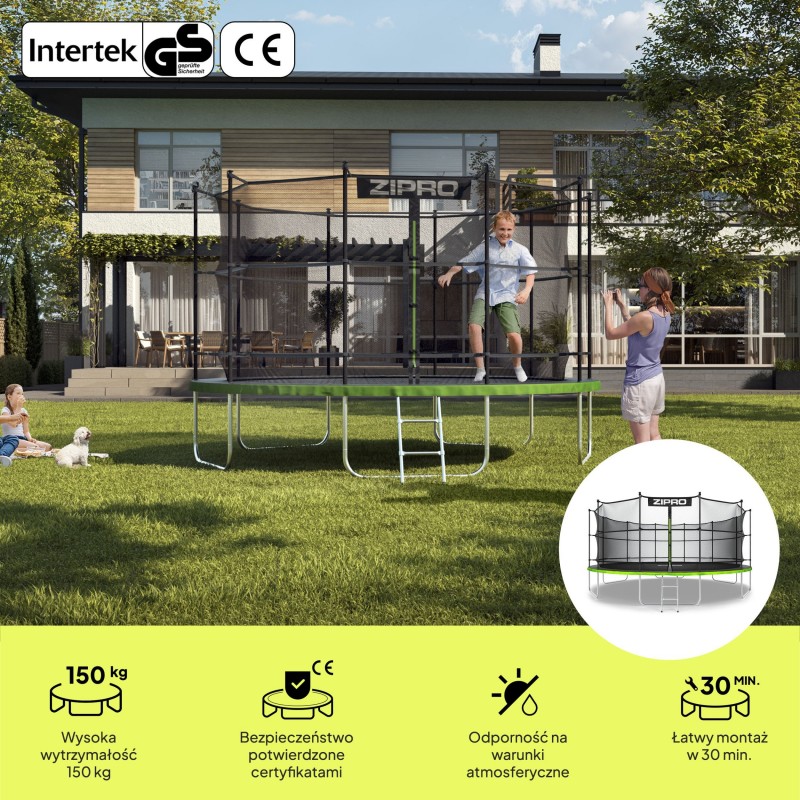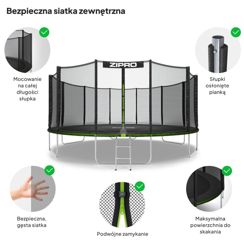 Садовий батут Zipro Jump Pro з вуличною сіткою 16FT 496 см, зелений-чорний, код: 5902659840752-IN