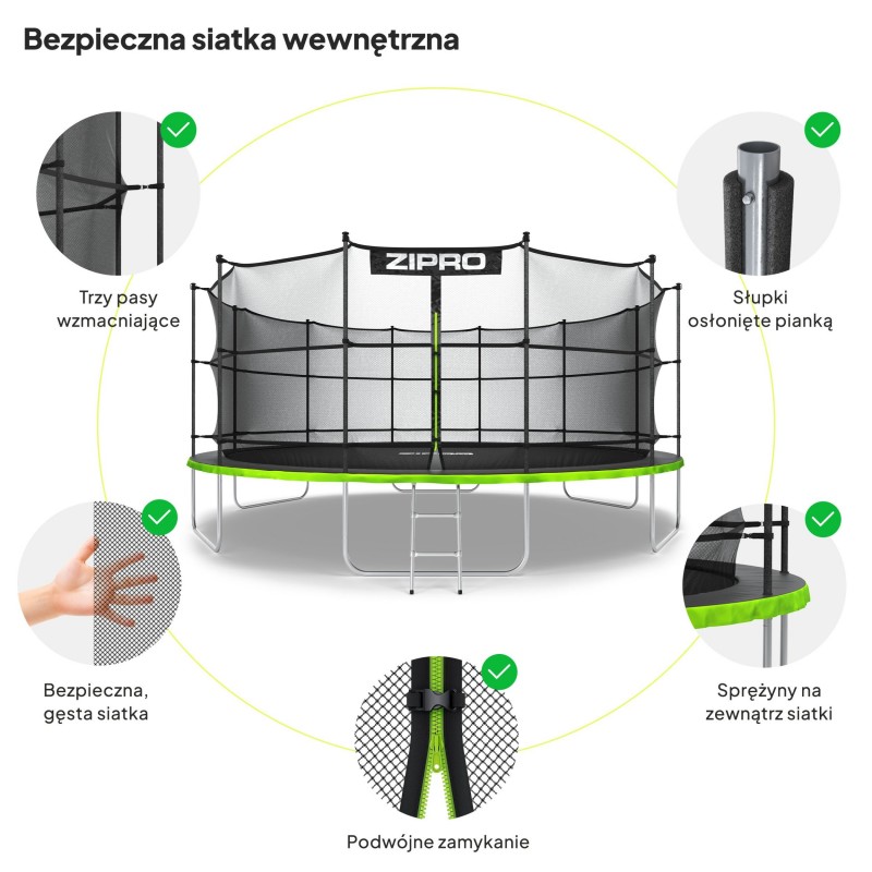 Батут Zipro Jump Pro 14FT (4350 мм) з внутрішньою сіткою, салатовий-чорний, код: 5902659840691-IN