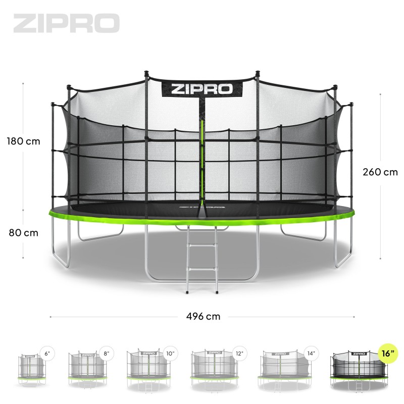 Батут Zipro Jump Pro 16FT (4960 мм) з внутрішньою сіткою, чорний-салатовий, код: 5902659840707-IN