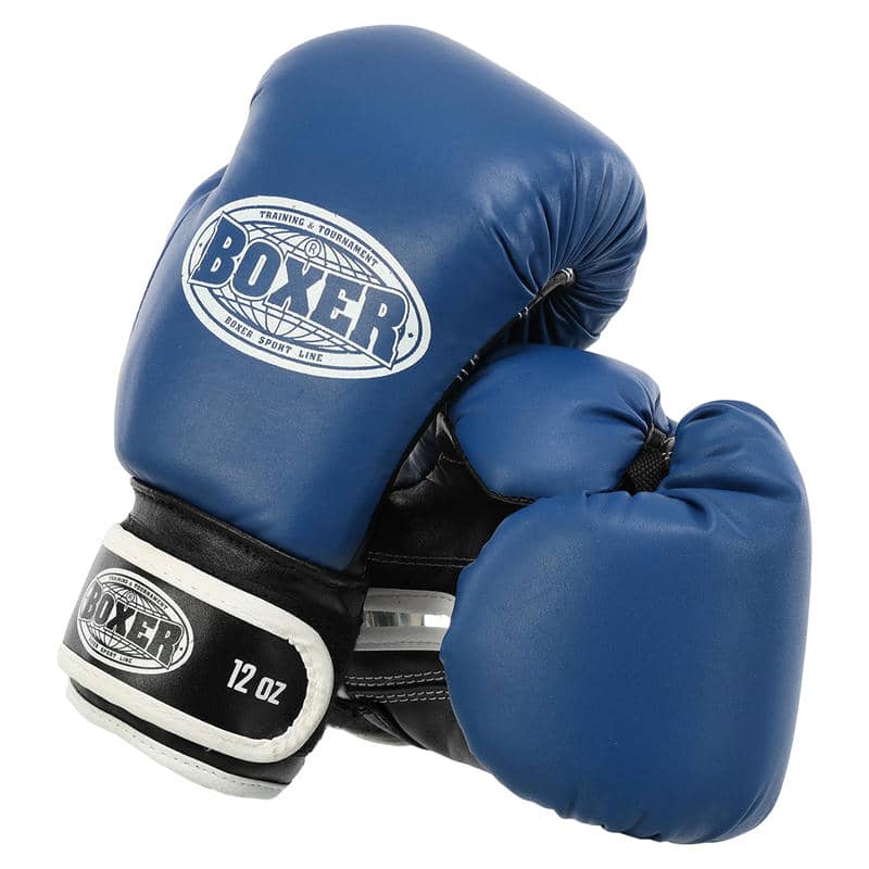 Рукавички боксерські Boxer шкіряні на липучці 10 унцій, синій-чорний, код: 2023_10BL-S52