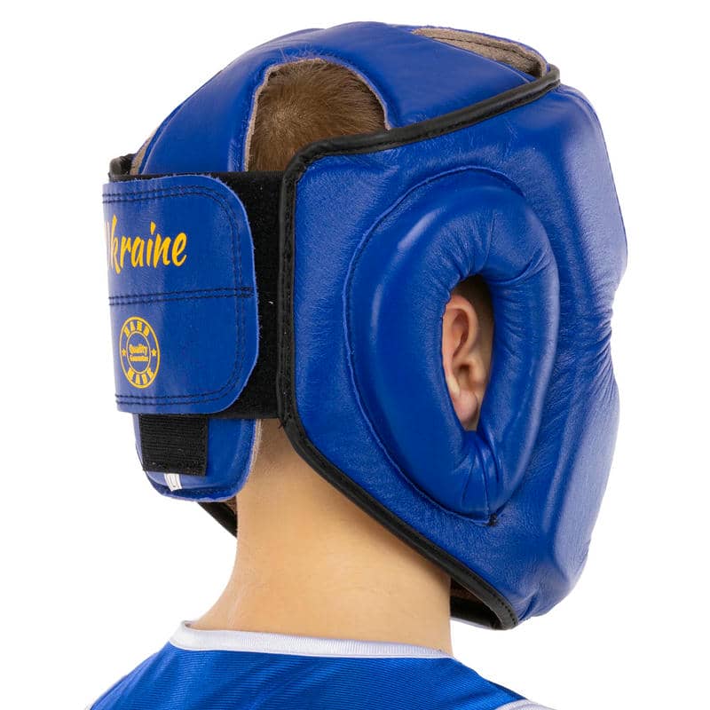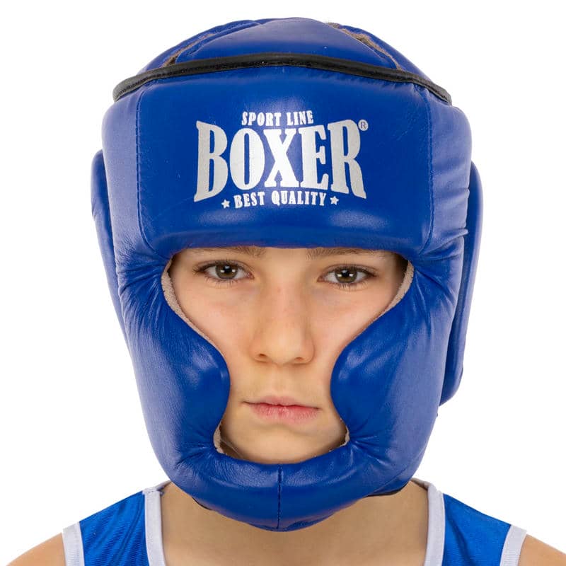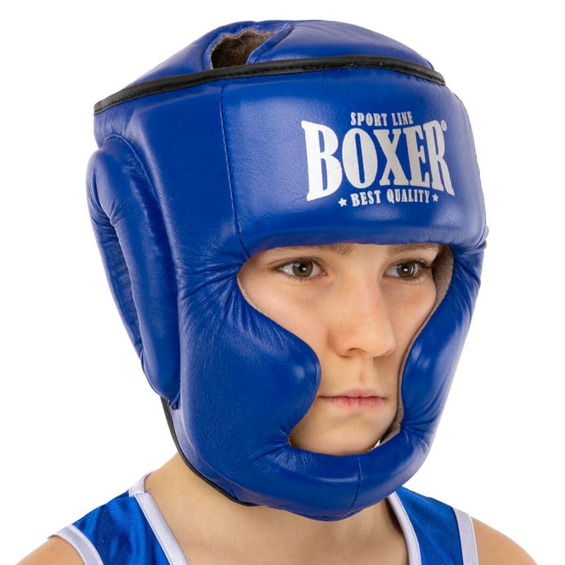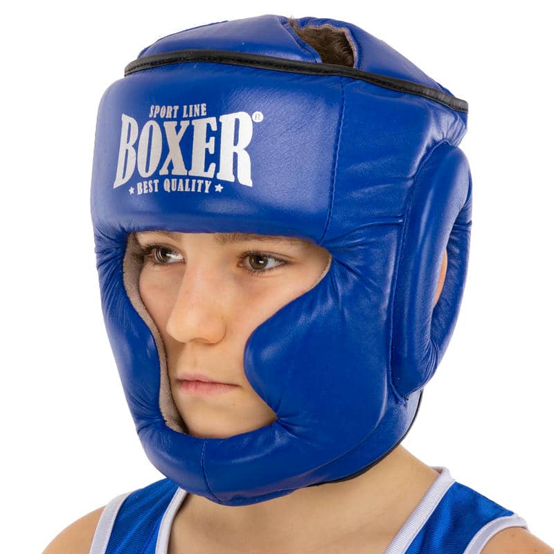 Шолом боксерський з повним захистом шкіряний Boxer New M, синій, код: 2033-N_MBL