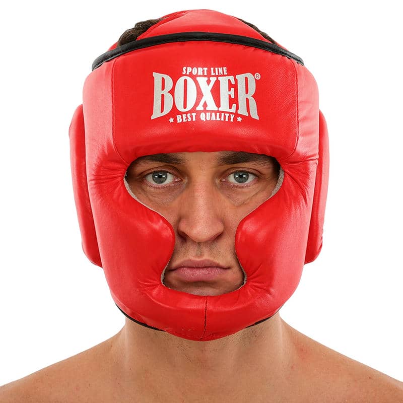 Шолом боксерський з повним захистом шкіряний Boxer New L, червоний, код: 2033-N_LR