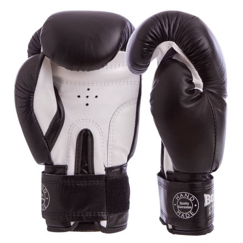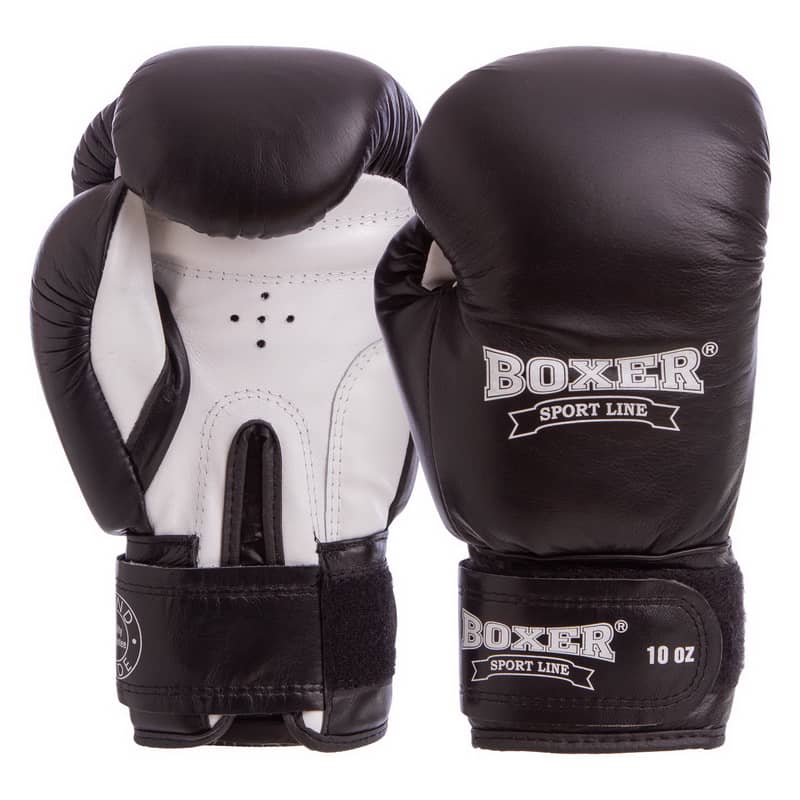Рукавички боксерські Boxer шкіряні на липучці 10 унцій, чорний-білий, код: 2023_10BK-S52