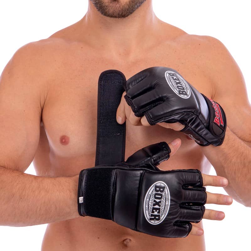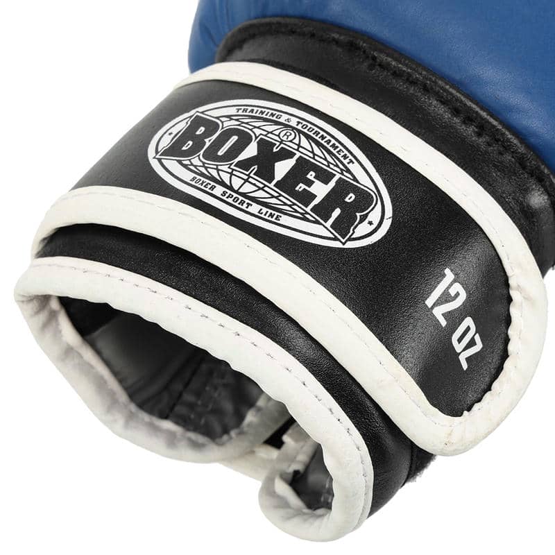 Рукавички боксерські Boxer шкіряні на липучці 12 унцій, синій-чорний, код: 2023_12BL-S52
