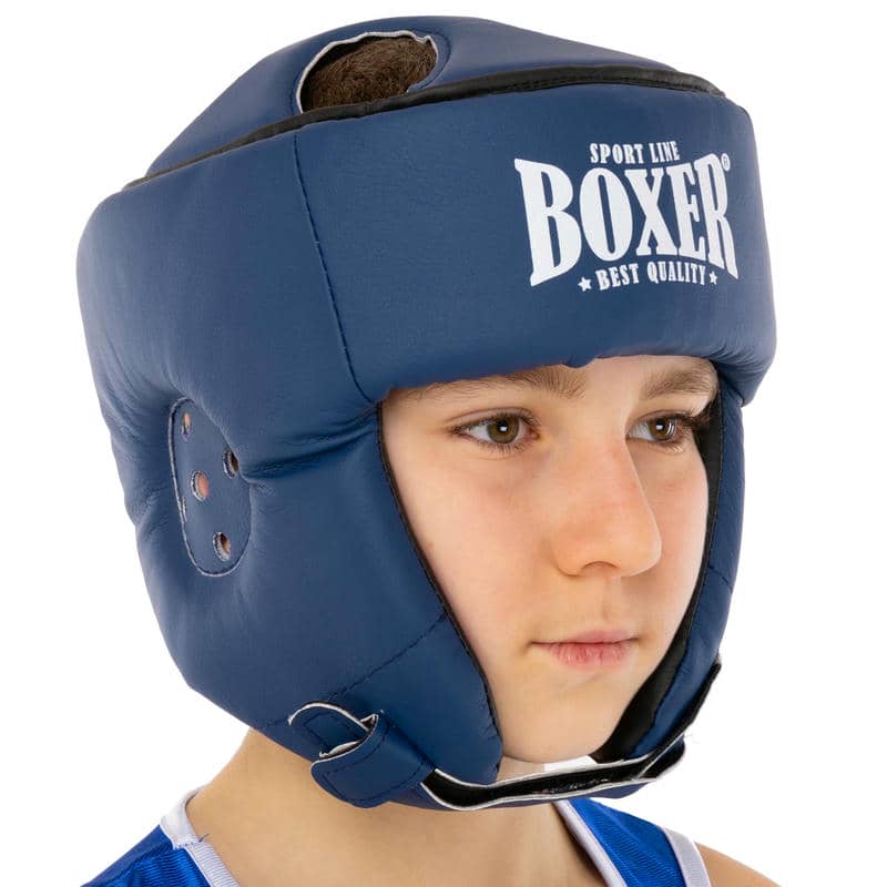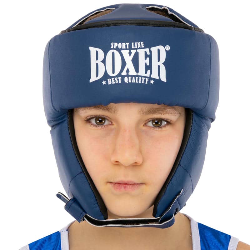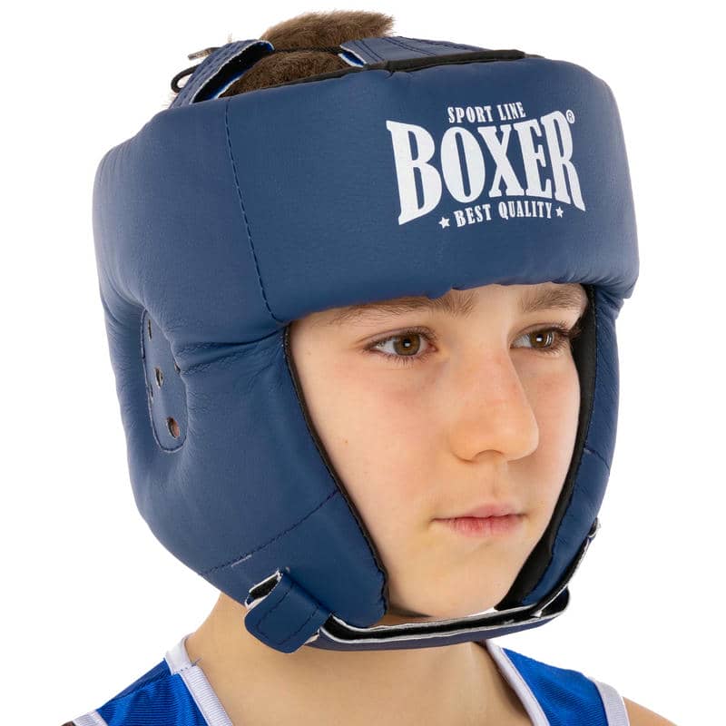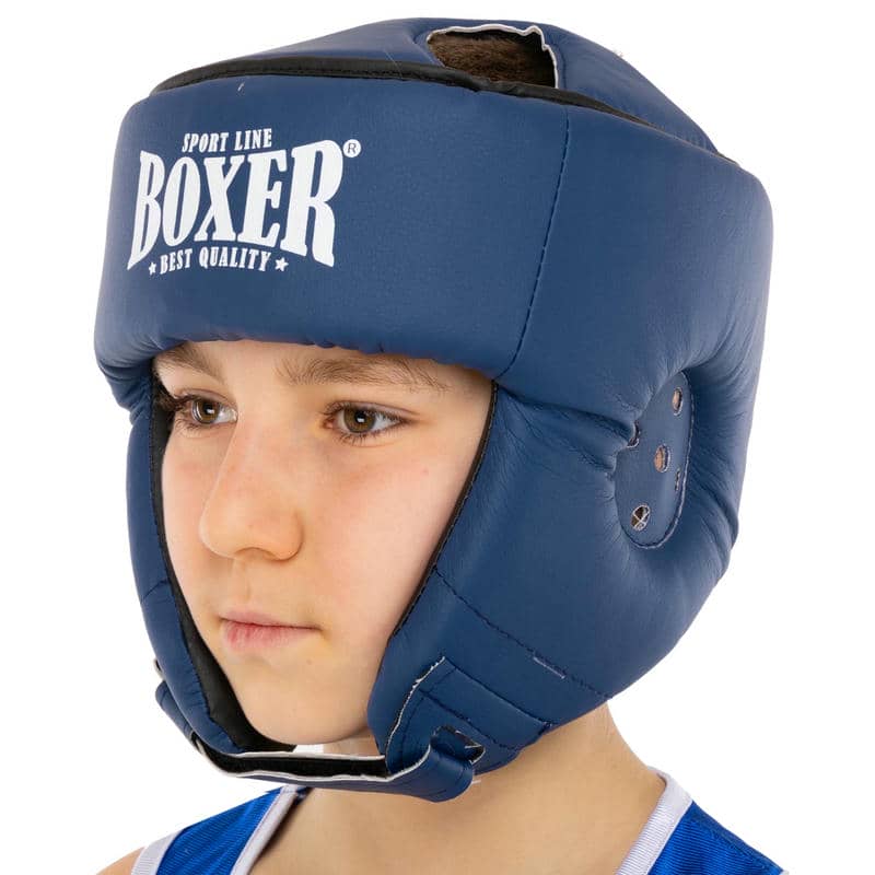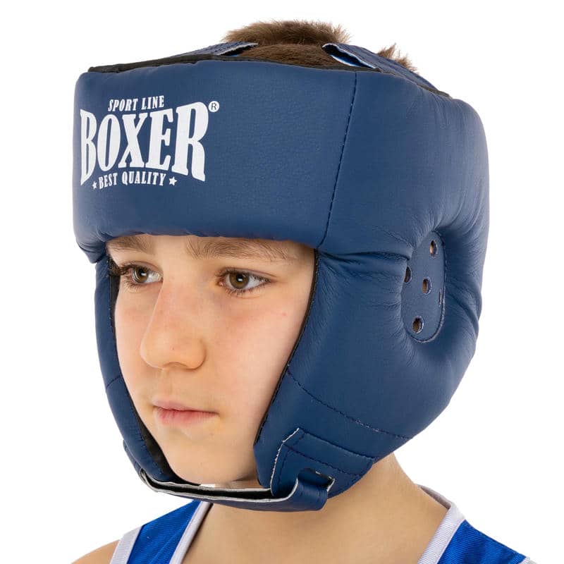 Шолом боксерський відкритий з посиленим захистом верхівки шкірозамінник Boxer L, синій, код: 2030-N_LBL